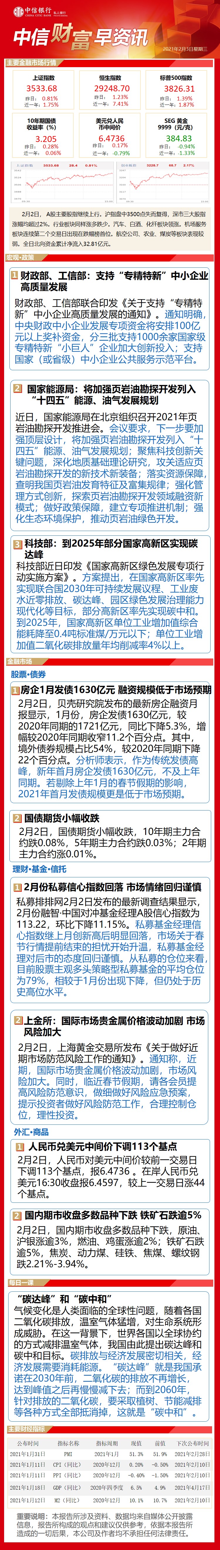 中信财富早资讯2月3日