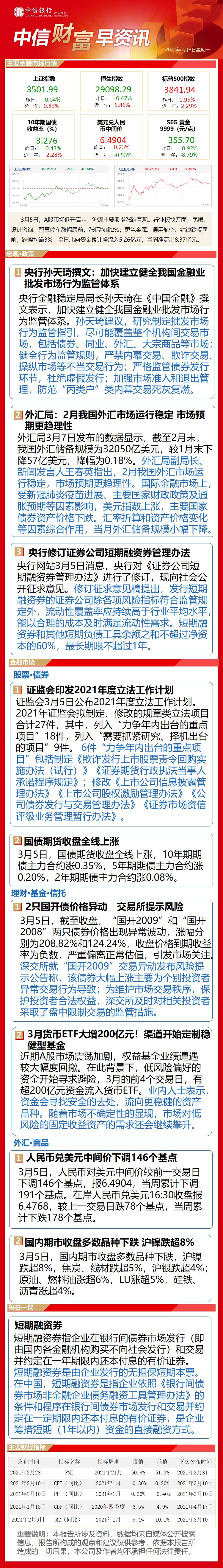 中信财富早资讯3月8日