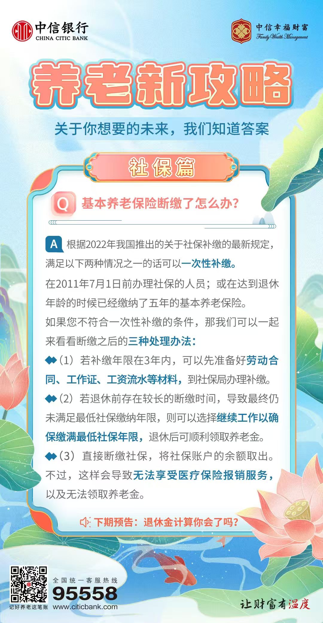 下一篇: 养老新攻略-基本养老保险断缴有什么影响,可以补缴吗?